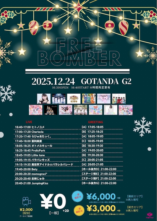【12/24(水)】『FREE BOMBER!! -X'mas SP-』@GOTANDA G2 リモートチェキ!