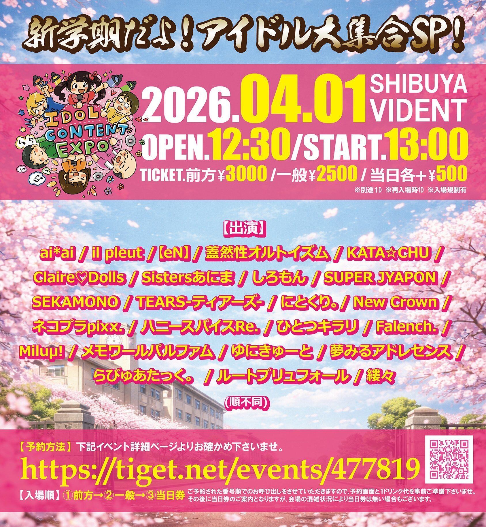 【4/1(水)】『IDOL CONTENT EXPO ~新学期だよ!アイドル大集合SP!~』@渋谷VIDENT リモートチェキ!